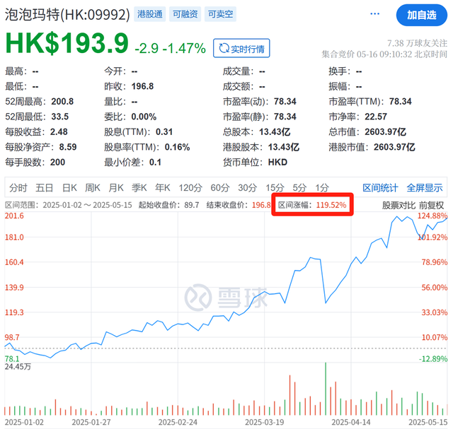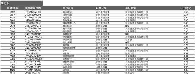 恒生消费指数的第一重仓股为新兴消费标杆泡泡玛特(占比9.55%),今年来涨幅119.52%!